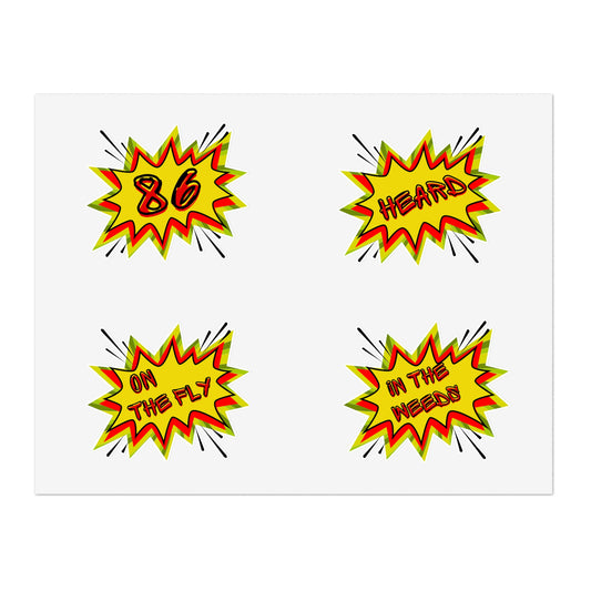 Kiss-Cut Vinyl Decals, 86, POW, Comic, Star Burst, Service Industry, Work, Restaurant, Server, Bartender, Chef, Cook, Stickers, Bar, Pub
