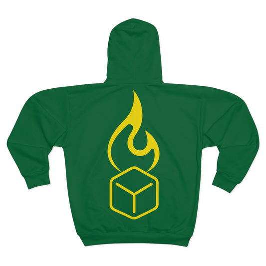 Green Zip Hoodie with Gold Brand Logo - Burn Tha Ice Unisex