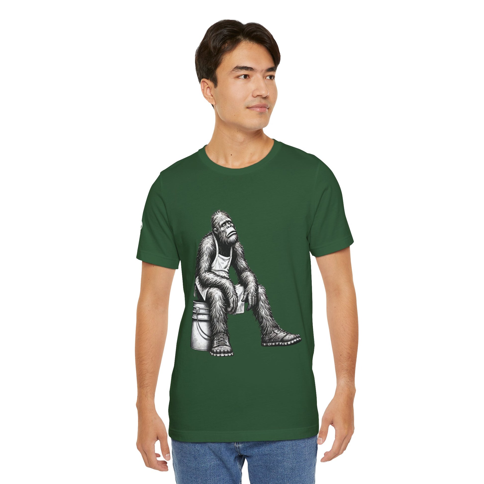 A comfortable and versatile T-Shirt featuring a tired Bigfoot design, perfect for hospitality professionals. Gives a casual and fun vibe, ideal for daily wear or lounging at home. Great gift for those who work in the service industry. Relevant for holidays like Christmas, birthdays, and work anniversaries.